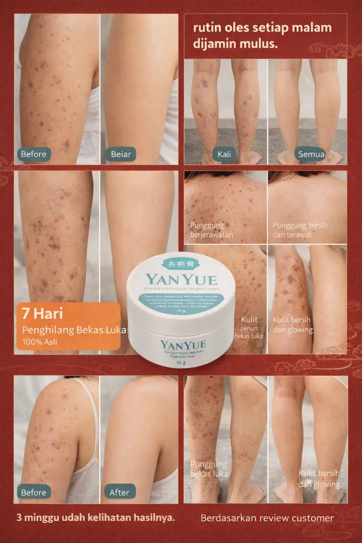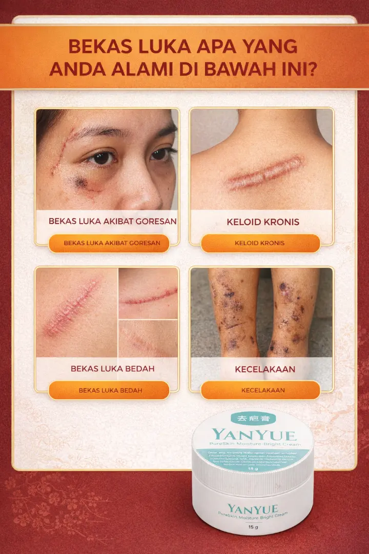 Yanyue Penghilang Bekas Luka membantu memudarkan bekas luka lama dan baru, bekas jahitan, luka bakar, serta koreng.